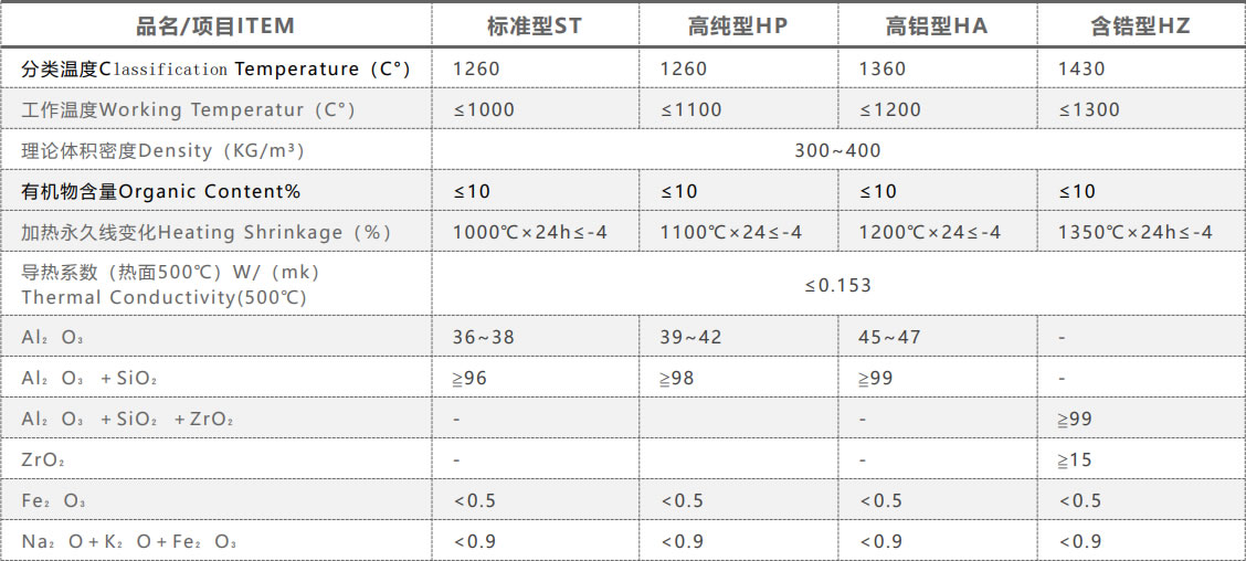 低導(dǎo)熱率、低熱容重,優(yōu)良的熱穩(wěn)定性及抗熱震性,耐壓強(qiáng)度高,具有良好的韌性